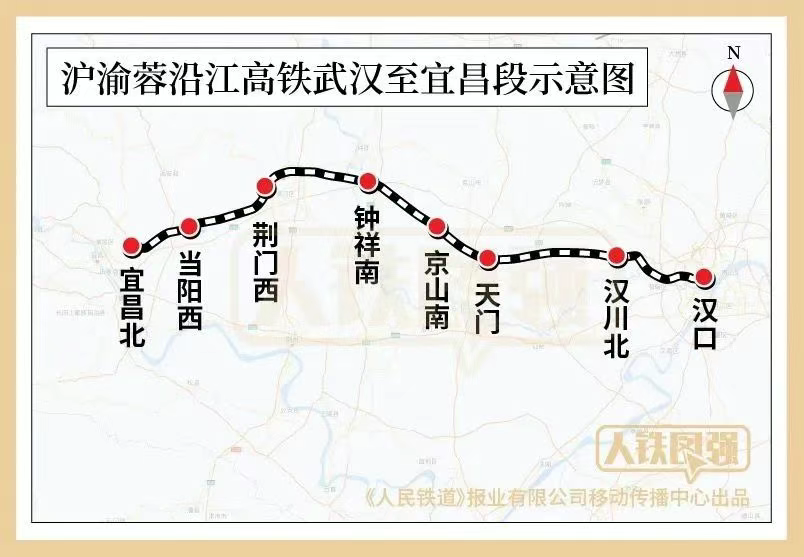 全线共设8座车站,其中汉口站为既有站,汉川北、天门、京山南、钟祥南、荆门西、当阳西、宜昌北为新建车站。