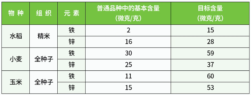 水稻、小麦籽粒中铁、锌含量及育种目标