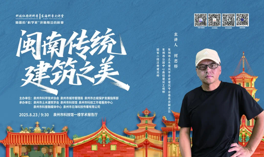 本次讲座由泉州市科学技术协会、泉州市城市管理局、泉州市古城保护发展指挥部主办,泉州市土木建筑学会、泉州市科技馆、泉州市科技工作者服务中心、泉州市科普融媒体中心、泉州市日海科技传播有限公司承办。