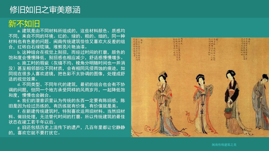 在对比和保护层面,何老师通过比较传统建筑和现代建筑在材料、形式和审美观念上的差异,引导大家思考不同时代建筑理念的演变。他重点阐述了“修旧如旧”这一保护原则,强调其并非简单复制旧貌,而是尽可能保留历史信息、延续文化传统。最后,何老师结合泉州本地实际修缮案例,具体说明了这一原则的实际应用与成效,提升了观众对传统建筑保护的科学认知和社会责任感。
