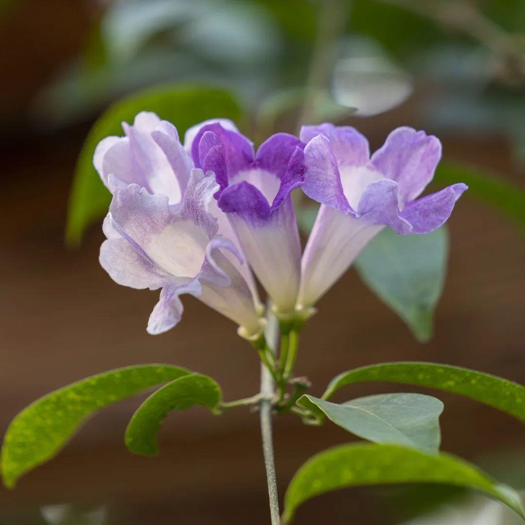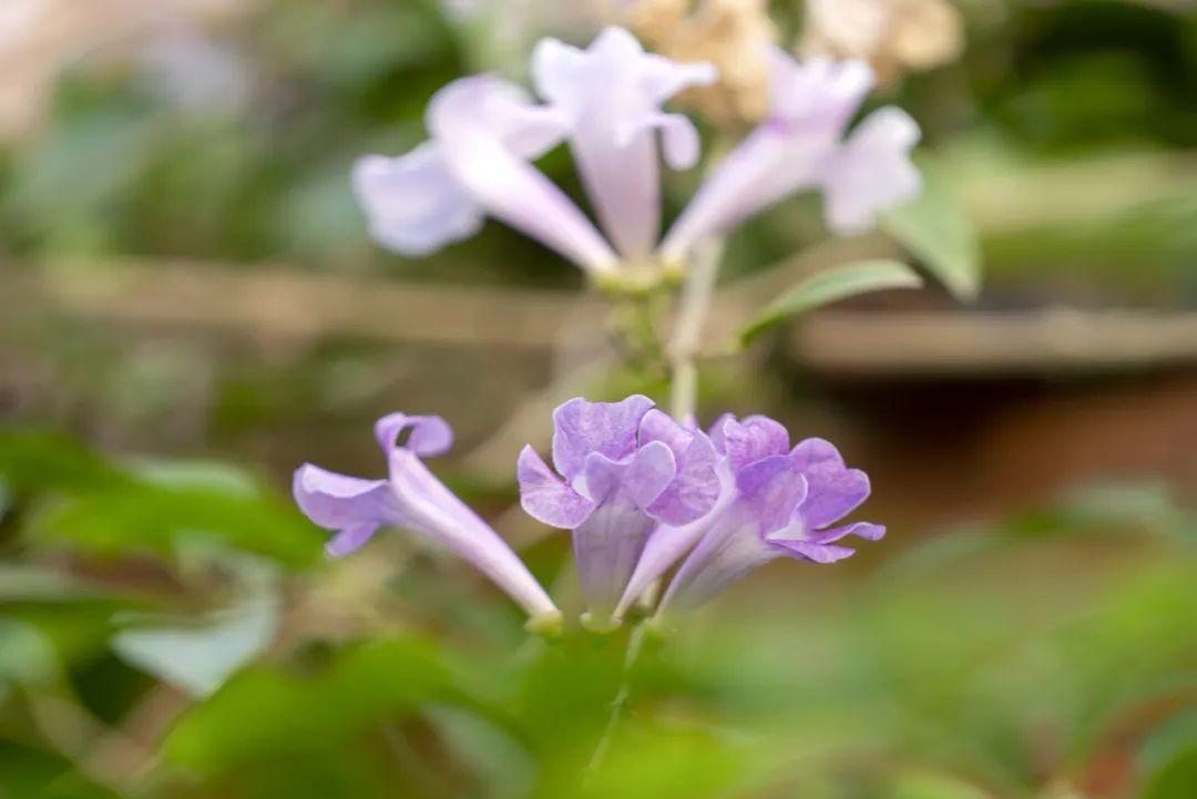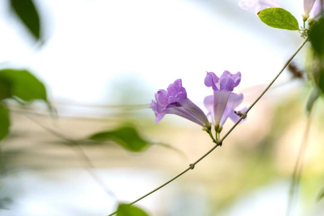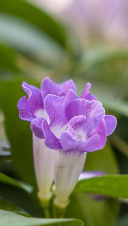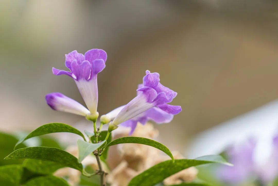 蒜香藤其实是紫葳科蒜香藤属常绿攀援性植物,原产于南美洲的圭亚那和巴西,我国华南地区有分布。又名紫铃藤、张氏紫葳。深绿色椭圆形的叶子是二出复叶,也就是说它的一片叶子是由2个小叶子组成的,顶生小叶变成卷须,花腋生,聚伞花序,花冠筒状,开口五裂。盛花期9-10月。其花、叶在搓揉之后,有大蒜的气味,因此得名蒜香藤。凑近了闻还有几分上头,脑海中顿时浮现出蒜香小龙虾、蒜香排骨、蒜蓉烤生蚝……。这爆花美艳又带着蒜香的奇妙花朵,真是个有个性的美人呀。