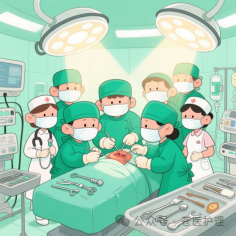 3.手术阶段:外科医生洗手消毒、切皮、进行手术、缝合皮肤。
