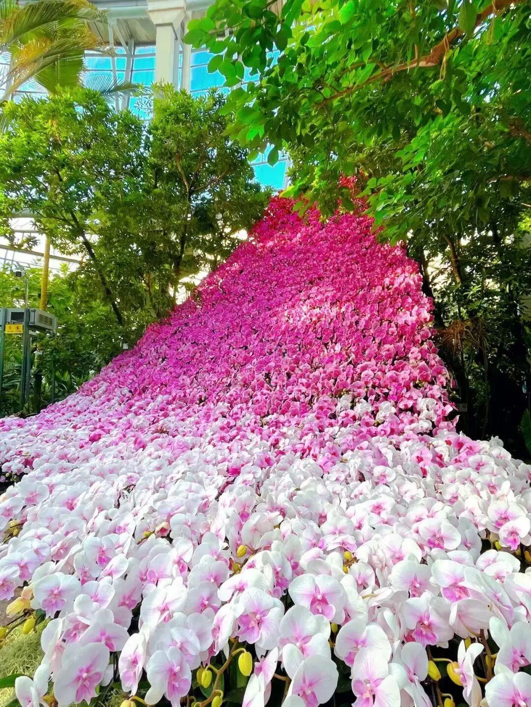 科普延伸:蝴蝶兰是世界著名的观赏花卉,被誉为“洋兰王后”。它主要分布在亚洲热带和亚热带地区,多生长在低海拔的热带和亚热带的丛林树干上。蝴蝶兰的生长对温度、湿度和光照要求较为严格,需要在温室环境中进行栽培,因为蝴蝶兰在野外就是肉质气生根附着在树干上生长的,所以喜欢半阴的环境,适合养护在明亮的散射光照处,不能强光暴晒。