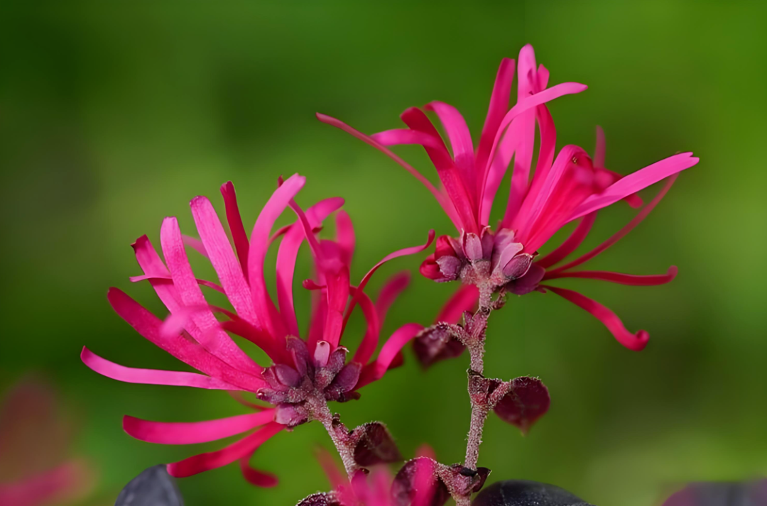 答案:红花檵木每一簇花通常有4片花瓣,花瓣呈紫红色,带状,细长且柔软,花瓣边缘有细小的锯齿状,花朵密集地生长在枝条顶端。