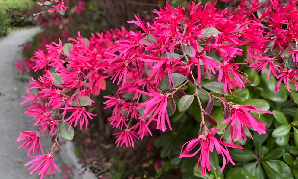 檵木的花瓣有红色、白色两种,城市里常见的是红花,白花多为野生檵木。红花檵木的花语:热烈、豪放,红颜似火。