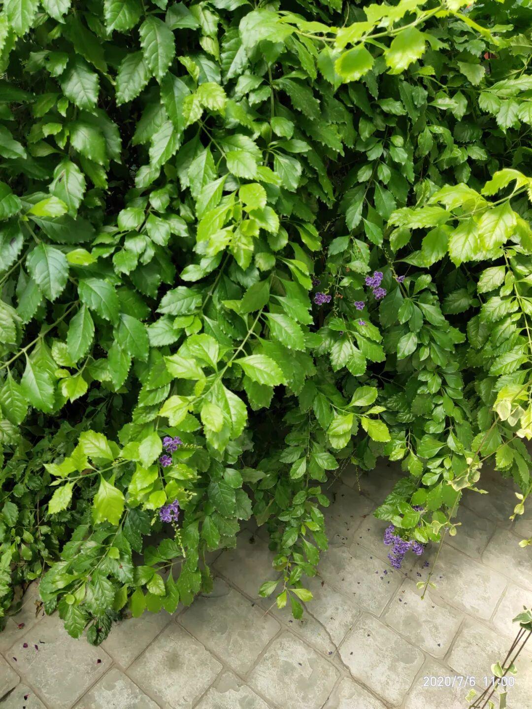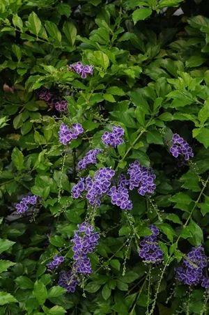 原产于热带美洲,是一种观赏价值较高的灌木。它生长迅速,耐修剪,常被用于园林绿篱或盆栽观赏。它也是假连翘的园艺品种。碧绿的叶子,衬托着一串串紫色的花,花瓣边缘镶有一圈白色晕,非常的漂亮。喜光照、长势快,扦插繁殖容易,种在花园中非常出彩有,是夏秋季里的颜值担当。但是全株有毒,特别是花后的果实,会引起腹痛呕吐抽搐昏迷等症状。