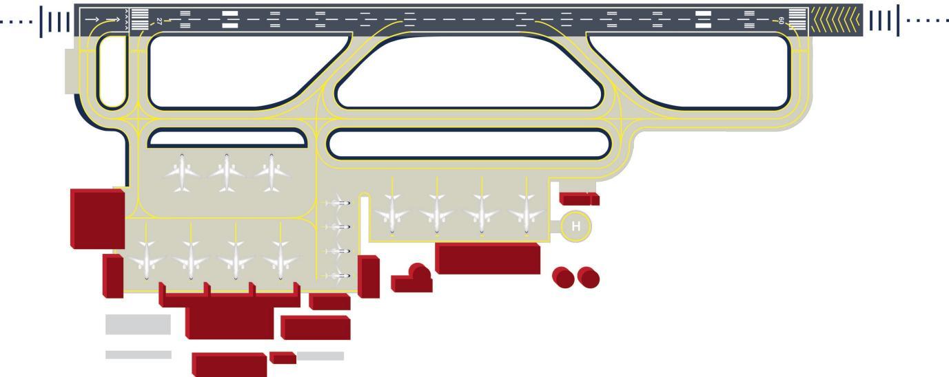 跑道的鸟瞰图显示,在乘客登机并准备起飞前,飞机会于停机坪内排队等候。