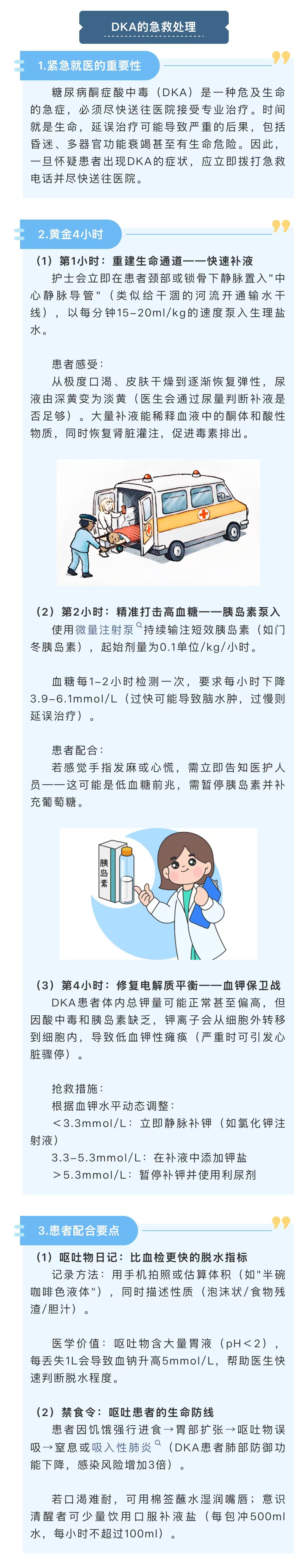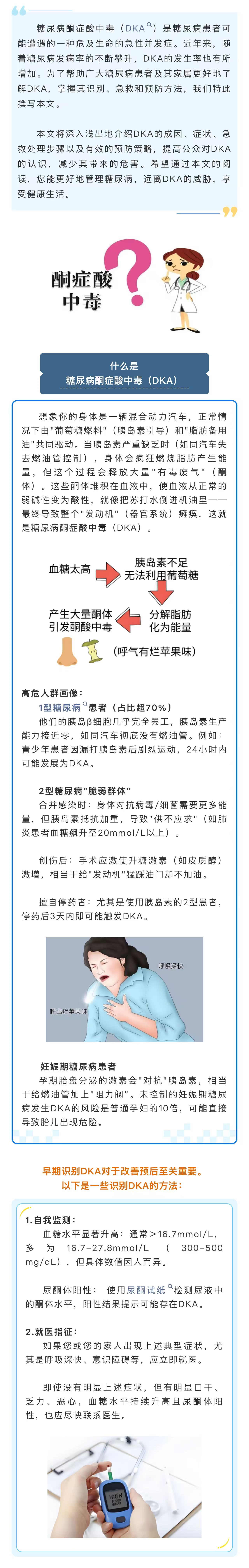 图文简介: 糖尿病酮症酸中毒(DKA)是糖尿病患者可能遭遇的一种危及生命的急性并发症。本文将深入浅出地介绍DKA的成因、症状、急救处理步骤以及有效的预防策略,提高公众对DKA的认识,减少其带来的危害。