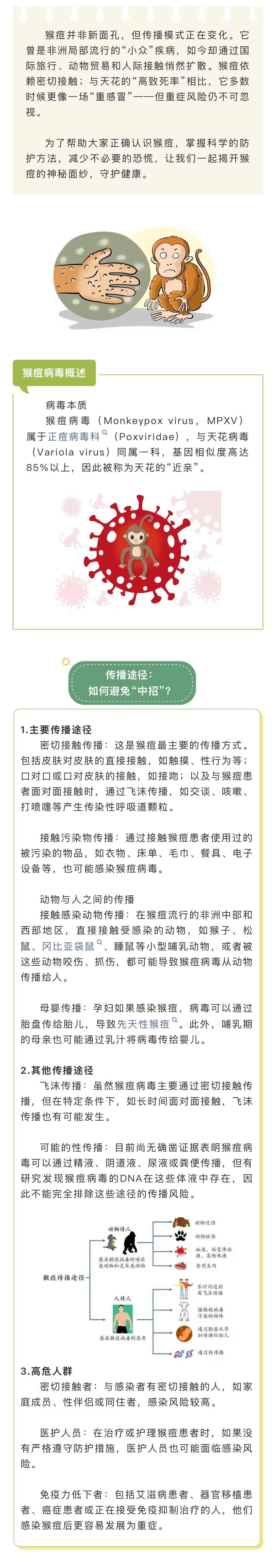 图文简介: 猴痘并非新面孔,但传播模式正在变化。为了帮助大家正确认识猴痘,掌握科学的防护方法,减少不必要的恐慌,让我们一起揭开猴痘的神秘面纱,守护健康。