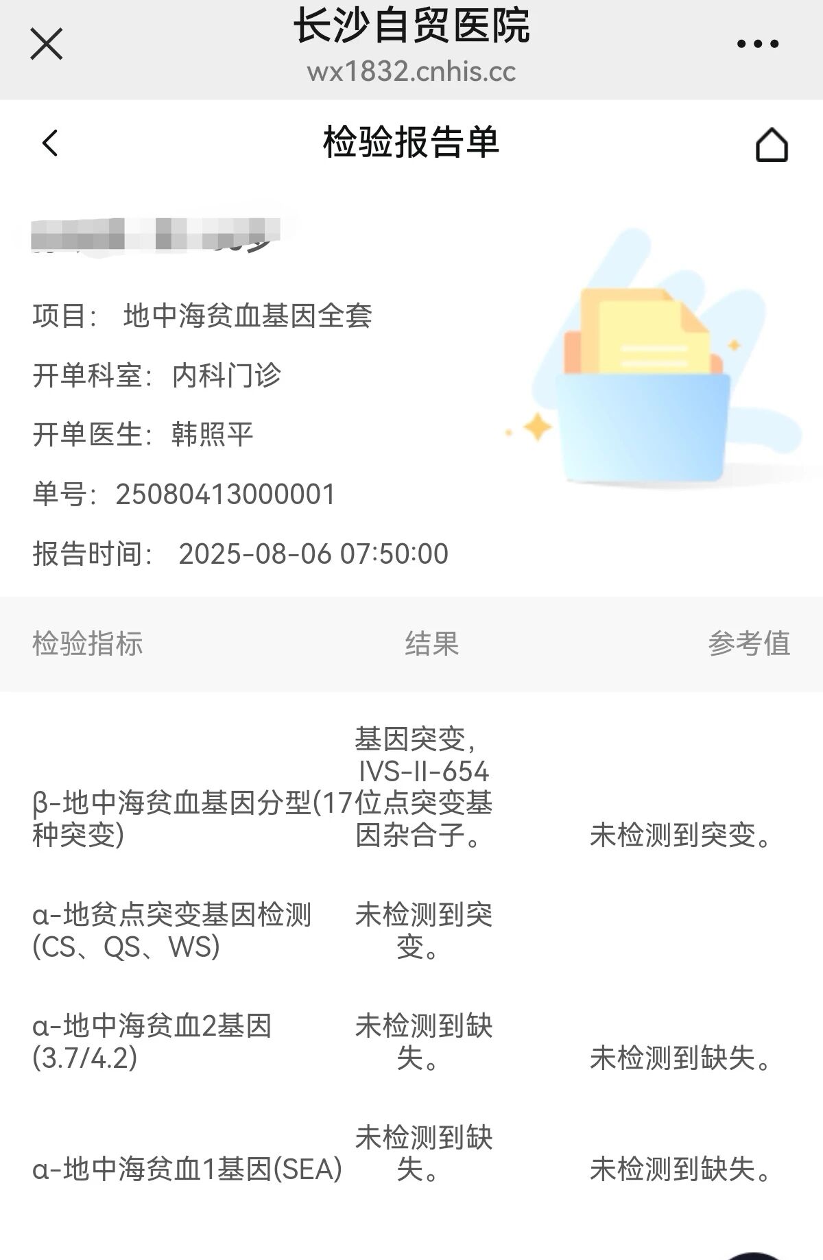 • 子代高危预警:若配偶同为β地贫携带者,子女有25%概率罹患重型地贫(需终身输血或干细胞移植);