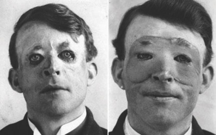 吉利斯医师治疗脸部严重受创的士兵,以面部重建手术帮助他们恢复部分的容貌。