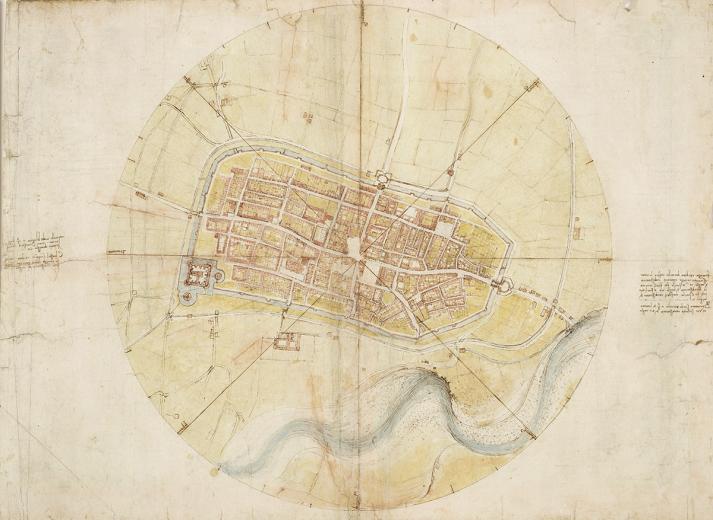1502年左右,达·芬奇被切萨雷·波吉亚任命为总建筑师和工程师,并在笔记中描绘了意大利城市伊莫拉。