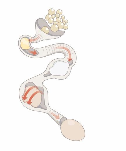 随后,正在形成的蛋会进入子宫,并在此停留约20小时。在此期间,由碳酸钙沉积形成的蛋壳逐渐矿化,同时卵卟啉等色素也开始沉淀。