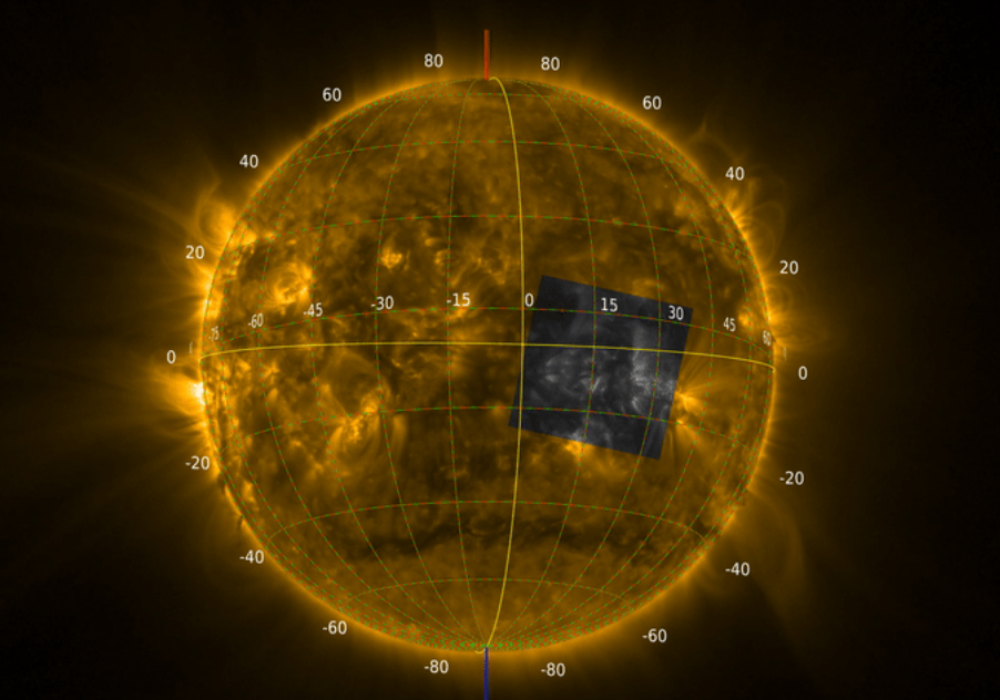太阳轨道飞行器所拍摄的太阳图像,图中灰色区域代表一个网格,这张图由25个网格构成。