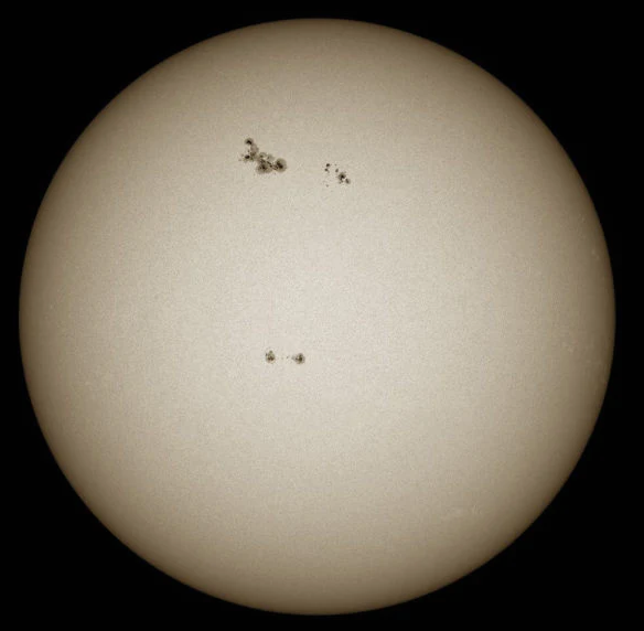 白光太阳图像,可以观察到太阳黑子等较为常见的现象,也可用于观测日食,但其他细节就很少。