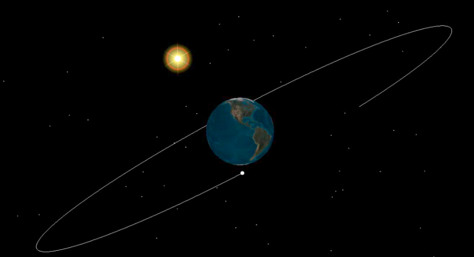 卫星可实现全天观测太阳,白色小点为卫星,白色线条为其轨道。