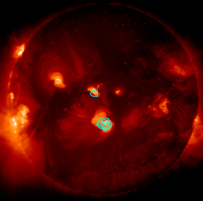 太阳的X射线图像,可见纳米耀斑的爆发。