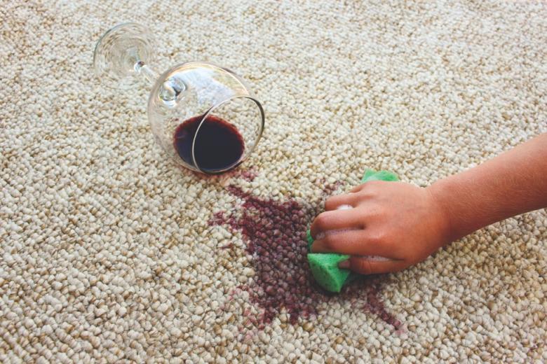 红酒的花青素色素分子会附着在地毯纤维上,将地毯染红。