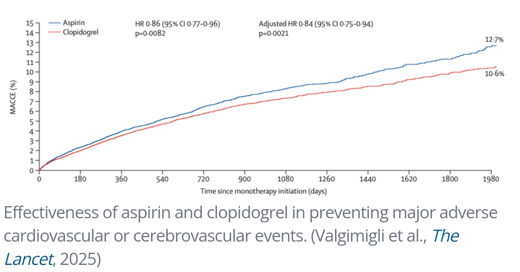 [2] The Guardian. Clopidogrel outperforms aspirin for heart disease prevention without extra bleeding risk, study finds[EB/OL]. 2025.