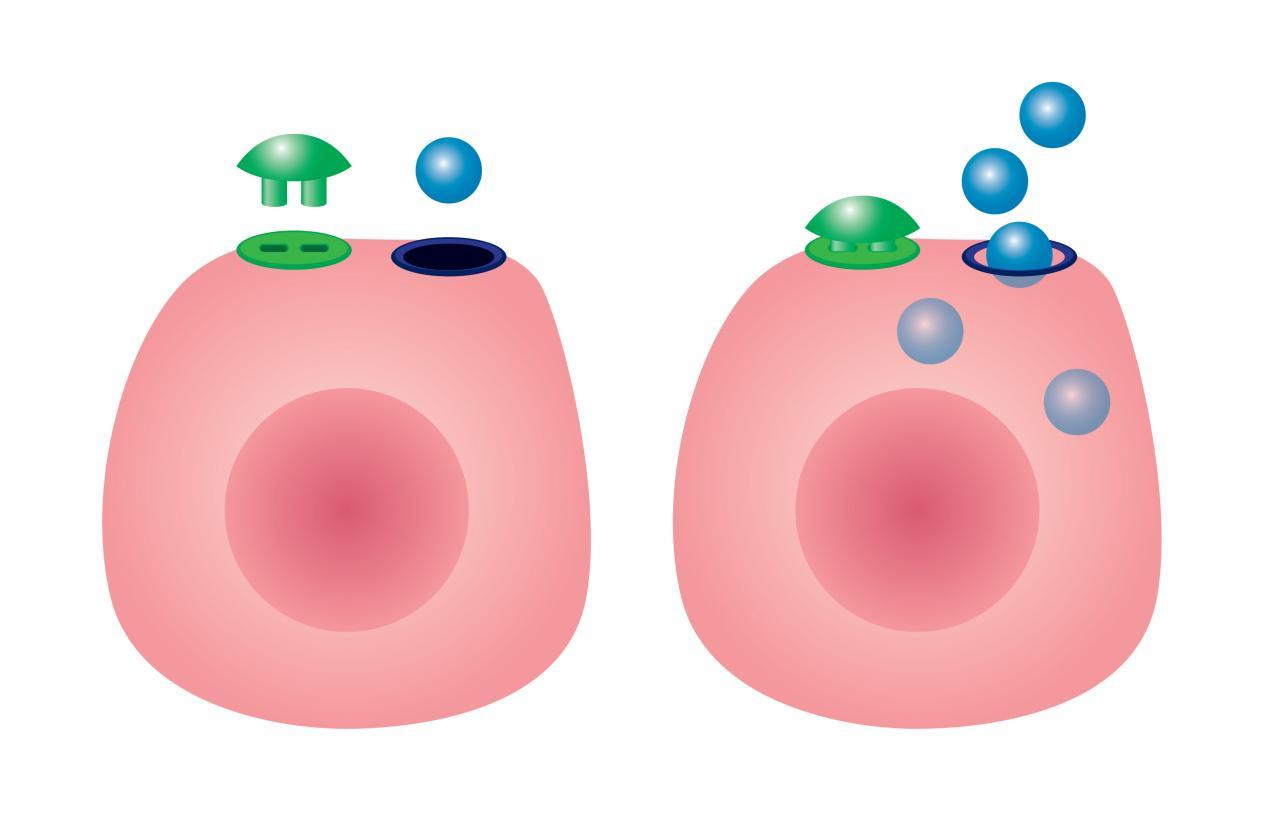葡萄糖是最简单的糖类形式,也是体细胞的能量来源。让葡萄糖进入细胞最有效的方式是由胰岛素发出信号。用餐后血糖升高,此时胰脏释放胰岛素至血流,开启细胞表面的葡萄糖通道,使葡萄糖进入。若缺乏胰岛素或细胞无法对胰岛素产生反应,血糖就会升高,导致高血糖;反之,若血液中葡萄糖含量过低,则会导致低血糖。