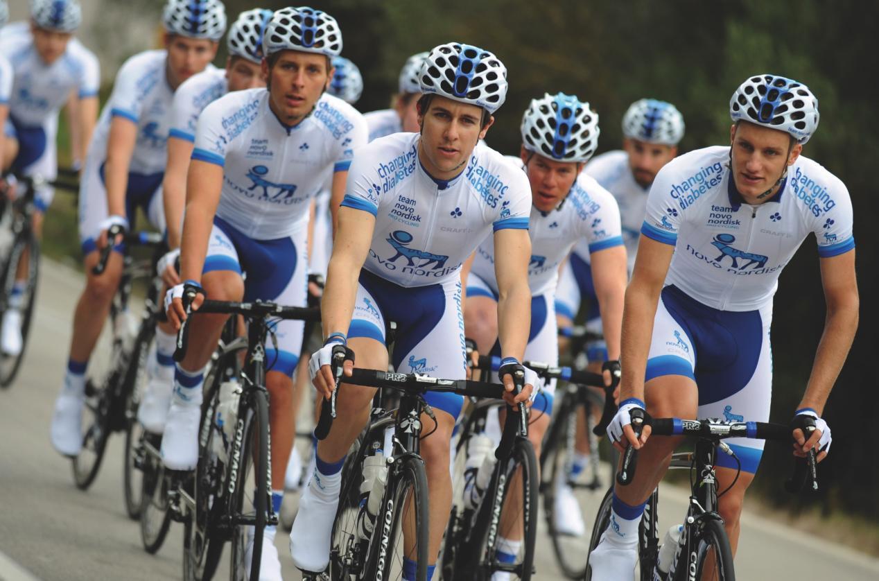 罹患糖尿病的运动员(如图中的诺和诺德车队成员)会在运动前、运动时和运动后持续监测血糖