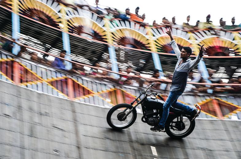进入20世纪,飞车特技逐渐从街头巷尾走向了更广阔的舞台。1915年左右,“死亡之墙”(Wall of Death)特技的诞生,更是将飞车特技的危险性与观赏性推向了新的高度。在这项特技中,摩托车手从竖立的圆筒状轨道底部疾驰而出,随着速度的激增,他们仿佛摆脱了重力的束缚,沿着轨道内侧水平飞驰,每一次表演都让人屏息凝视,生怕下一秒就会发生不可预知的灾难。