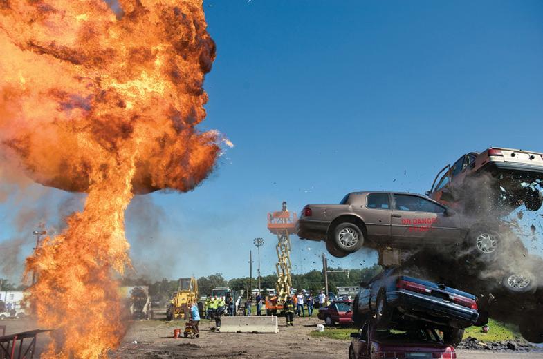 透过在表演中引入火焰,最勇敢的飞车特技演员进一步提升其技术层次。