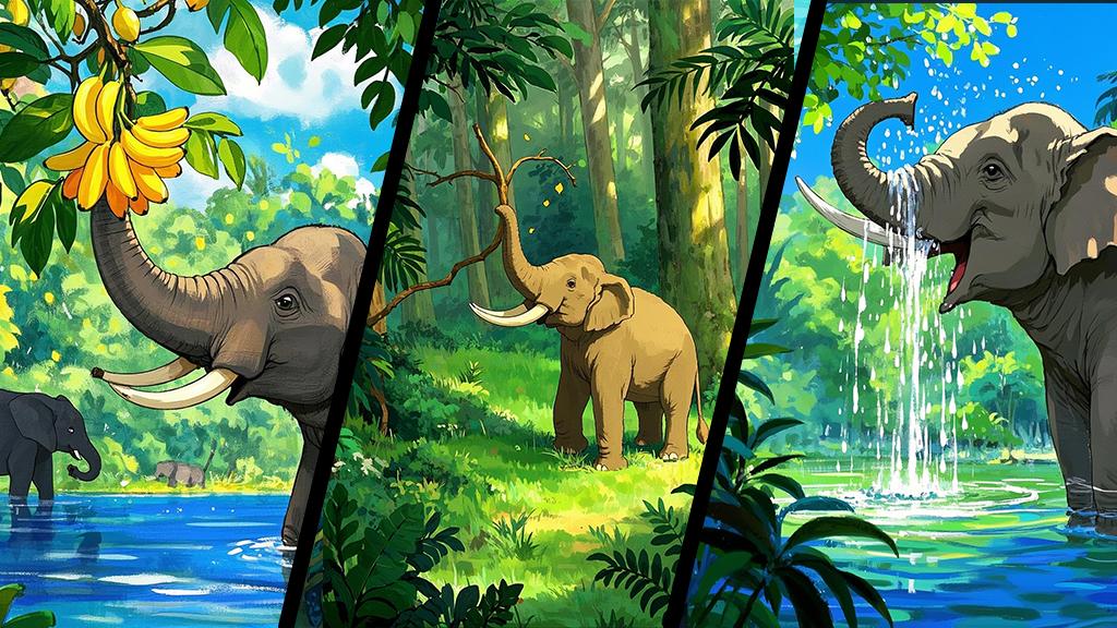 咚咚喵偶遇了一只大象,看到它用长长的鼻子卷起一根树枝放进嘴里。咚咚喵:“你们这鼻子也太厉害了吧,能当手用?”大象甩了甩鼻,说:“可不,这叫多功能操作“臂”。”