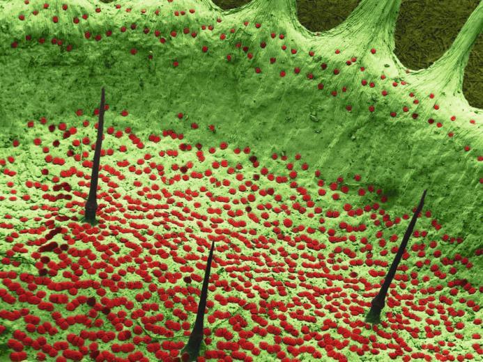 荨麻刺毛的显微结构会刺入皮肤,释放刺激性物质