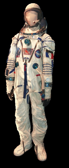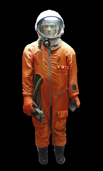 在历史性的东方1号(Vostok1)绕地飞行中,宇航服首次正式登场。宇航员尤里·加加林所穿的亮橙色SK-1宇航服配备了加压功能和附属的维生系统。