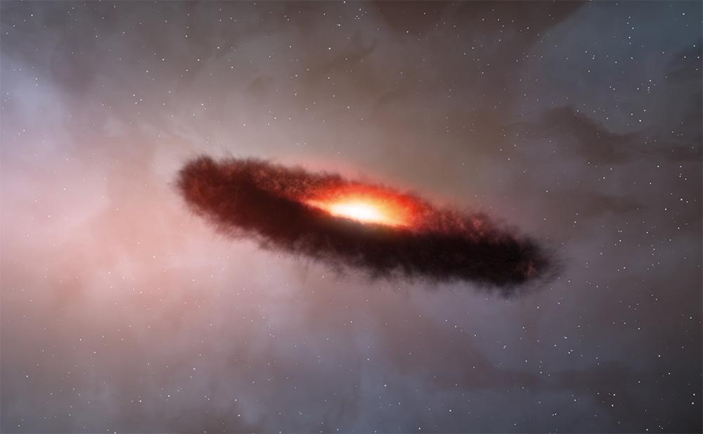 艺术家笔下,新生恒星周围满是尘埃的原行星盘