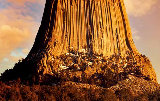 美国怀俄明州的魔鬼塔是世界上最壮观的柱状节理构造之一。这座巨型岩体突兀地耸立在黑山国家森林的植被之中,仿佛直接从地壳深处穿刺而出。从地质学角度看,这座高达264米的巨型火成岩体由无数直径约3米的六边形石柱紧密排列组成。其形成过程始于地幔柱活动,炽热的岩浆侵入地壳浅层后缓慢冷却。在冷却过程中,岩浆内部产生均匀的收缩应力,最终形成规则的六边形节理系统。这种完美的几何形态是岩浆冷却速率与矿物结晶过程共同作用的结果。尽管柱状节理的形成机制已被地质学家充分理解,但魔鬼塔如此完美的形态和巨大的规模仍然是地质学上的未解之谜。