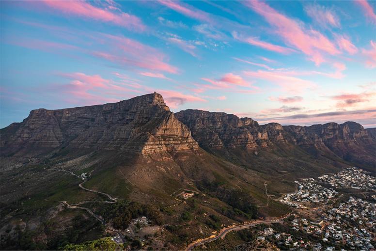 南非开普敦的桌山以其独特的平顶山形而闻名。这座海拔1086米的山体顶部如同被刀削般平整,这种特殊形态记录了漫长的地质历史。现今暴露的山体顶部岩层曾是古海底的沉积物,主要由砂岩和页岩组成。其下伏基岩则是更古老的花岗岩体。在地壳抬升和海平面变化的共同作用下,这些原本深埋海底的沉积岩层被抬升暴露,随后在风化侵蚀作用下,较软的围岩被剥蚀,最终留下这座平坦如桌的孤立山体。桌山的地层序列就像一本打开的地质教科书,清晰展现了该地区从海洋到陆地的演化历程。