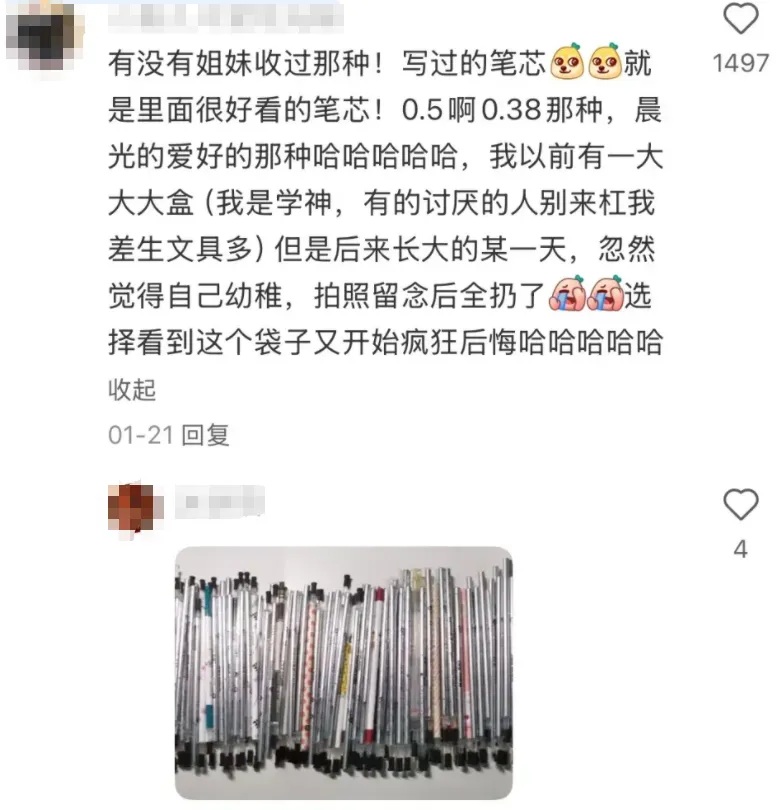 有人表示自己喜欢收集用完的笔芯,果不其然在评论区找到了同好丨图片来源网络
