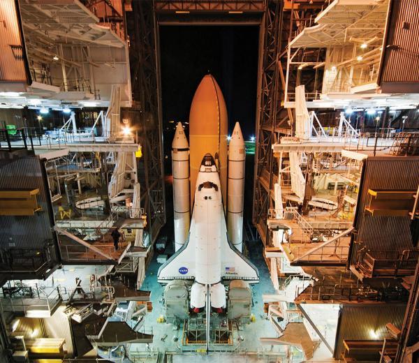 1990年,亚特兰蒂斯号(Atlantis)航天飞机正从VAB缓缓移出,前往发射台执行任务。