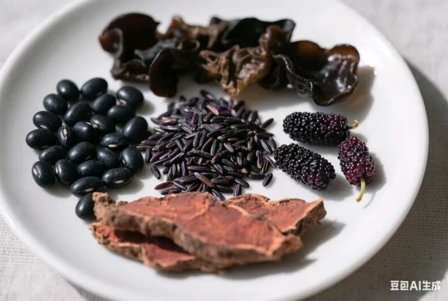 推荐食物:黑豆、黑芝麻、黑米、黑木耳、桑葚、何首乌。可将其打成豆浆或煮粥,每日适量食用。