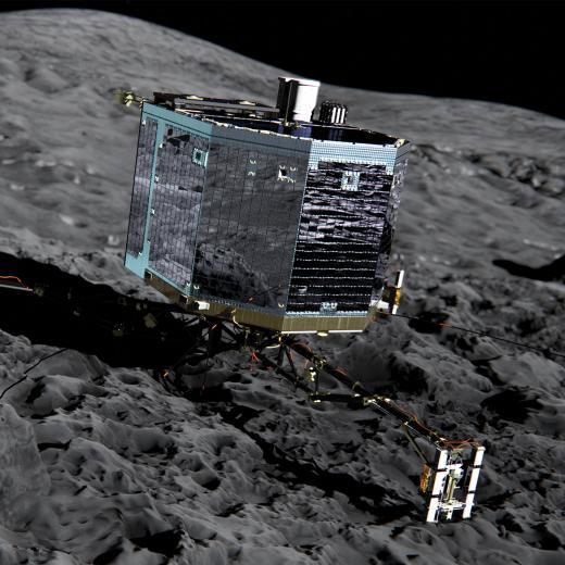 罗塞塔号的目标是直径达4千米的67P/楚留莫夫-格拉希门克彗星(67P/Churyumov-Gerasimenko),这颗彗星目前正沿着椭圆轨道绕太阳公转,其轨道近日点位于火星轨道内侧,远日点位于木星轨道外侧。整个罗塞塔任务历时十年,期间有957天因探测器远离太阳,太阳能板产生的电力不足以维持所有仪器的正常运转,重达3000公斤的探测器不得不进入休眠状态,以节省能源。然而,任务的高潮时刻定格在2014年11月,罗塞塔号以每秒约1米的速度在彗星上方释放了菲莱号登陆器,使其成功降落在彗星表面。