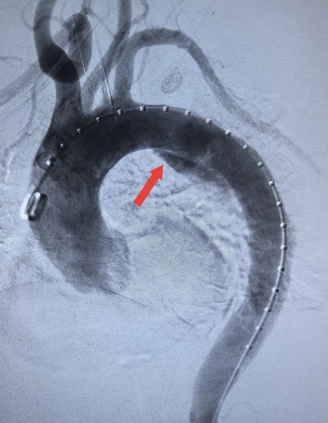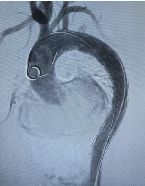面对急剧升级的病情,医院第一时间启动多学科协作(MDT)机制,血管外科、心血管内科、呼吸内科、内分泌科、风湿免疫科、麻醉科、ICU、放射科等多学科专家迅速集结,对患者进行全面会诊评估后一致判定其具备早期手术指征,并确定“全麻下胸主动脉覆膜支架腔内修复术”微创治疗方案。