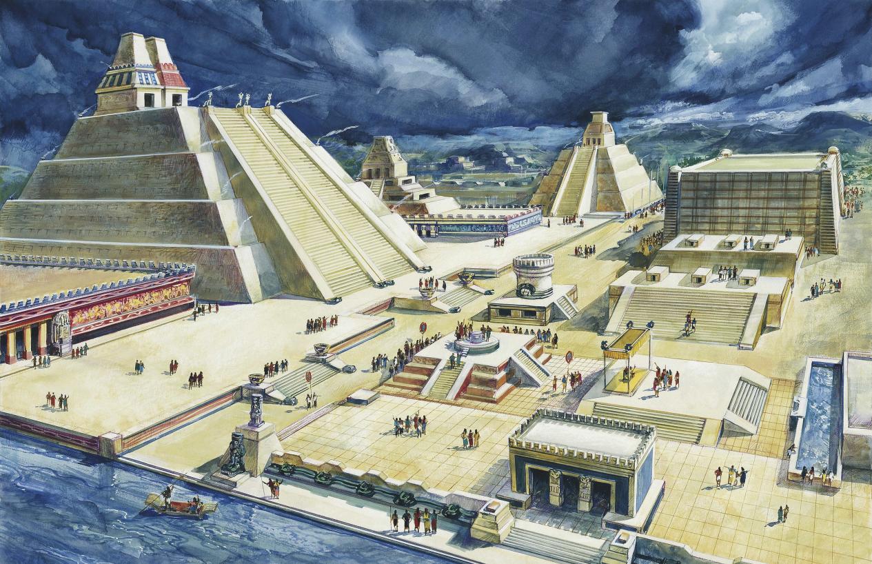 特诺奇蒂特兰大神庙,这座城市的灵魂所在,位于城中心,被坚固的城墙紧紧拱卫。走进大庙区,仿佛踏入了一个神秘而庄严的世界。这里共有70座以上的建筑物,每一座都蕴含着深厚的文化底蕴和宗教意义。而最引人注目的,莫过于那座供奉战神维齐洛波奇特利(Huitzilopochtli)和雨神特拉洛克(Tlaloc)的巨型金字塔。金字塔高耸入云,气势恢宏,每当祭祀之日,这里便成为全城最为热闹的地方。根据16世纪西班牙征服者的记载,在活人献祭的仪式中,祭品的心脏会在这座金字塔前被挖出,以此来荣耀并取悦阿兹特克的神祇,祈求神灵的庇护与恩赐。