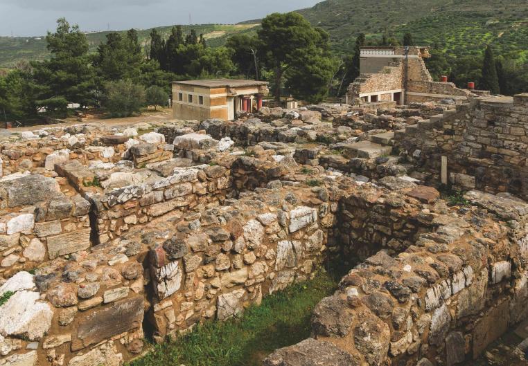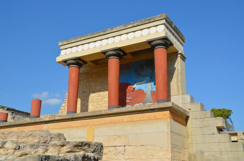 同样值得一提的,还有克里特岛的克诺索斯城。这座可追溯至公元前2000多年的城市,是欧洲最古老的城市之一。米诺安文明对爱琴海一带的贸易影响甚巨,他们精通陶艺,且创造了独特的线形文字A。克诺索斯城的中央矗立着一座雄伟的宫殿,这座宫殿既华丽又兼具防御功能。其宫墙厚实坚固,且设有巧妙的排水系统;根据希腊神话记载,这座宫殿是米诺斯国王的住所,也是牛头人身怪米诺陶洛斯(Minotaur)被囚禁的迷宫(Labyrinth)所在地。