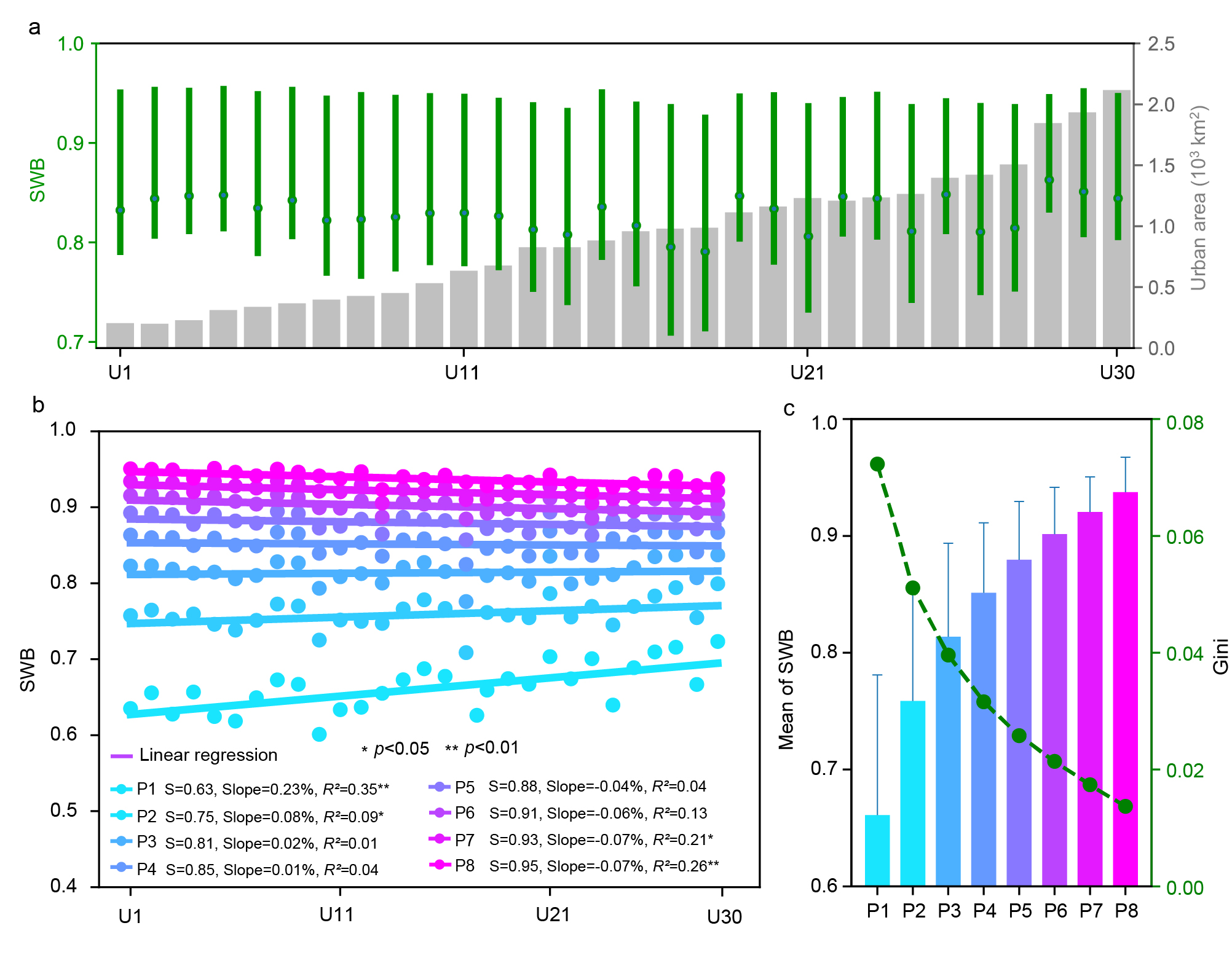 近日,中国科学院生态环境研究中心区域与城市生态安全全国重点实验室孙然好研究员和陈利顶研究员等,在城市化对居民主观福祉(Subjective Well-being, SWB)的影响方面取得重要进展。相关成果发表在National Science Review (《国家科学评论》)。