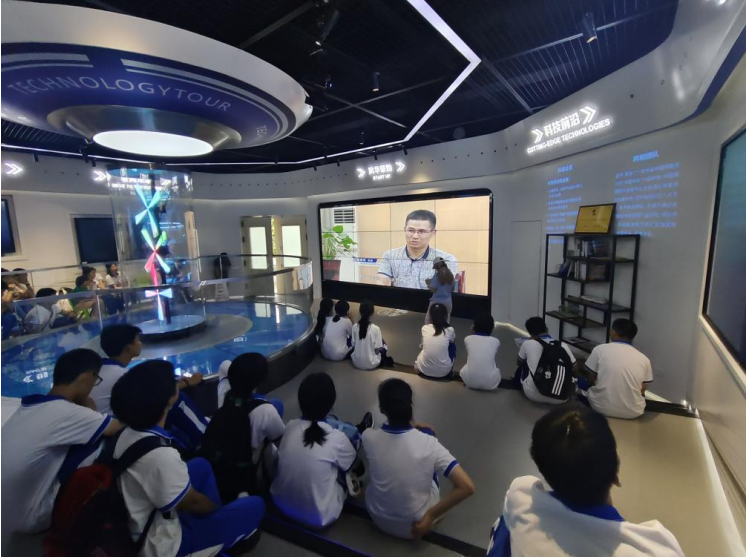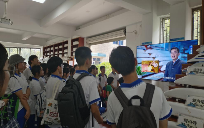 在中南大学高速列车研究中心动模型实验室和碰撞实验室,同学们观看了《新质湖南-驭风疾行》专题科普片、复兴号高速列车/时速600公里磁悬浮列车等动模型试验视频、复兴号高速列车/国内及出口的城轨列车的碰撞试验视频;科普志愿者王文月、杨丽向同学们讲解了实验室自主研建的列车动模型与实车碰撞试验系统的结构、功能及承担的重要科研任务,阐释了列车减阻降噪、列车过隧道、列车交会等背后的空气动力学原理及不同类型的吸能防爬装置的设计原理、功能应用等。此外,还为大家讲述了科技工作者们在科研一线攻坚克难的故事。