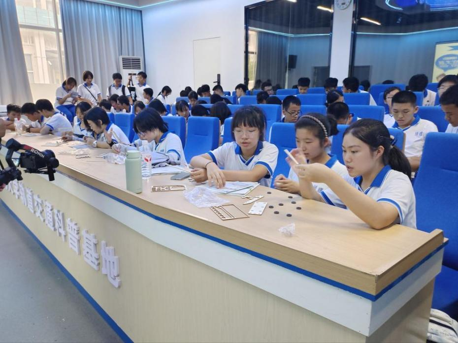 最后,同学们在科普报告厅,聆听了来自实验室研究生学姐刘浩源带来的科普主题讲座,讲座过程中还穿插了“科普小课堂”问答、磁悬浮列车手工组装等活动,每一次高高举手,每一个认真的动作,将现场氛围推向紧张又活跃,这次历时近3个小时的活动也在这欢声笑语中结束。