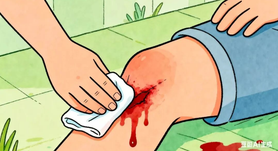 伤口出血时,找干净纱布、毛巾(实在没有,用洗干净的棉质衣物也行),叠成方块压在出血点上——别来回擦,也别压一会儿就掀开看,持续按压3~5分钟,血止住前尽量不动。如果是四肢出血,还需把受伤的胳膊/腿抬高过心脏,帮着止血。