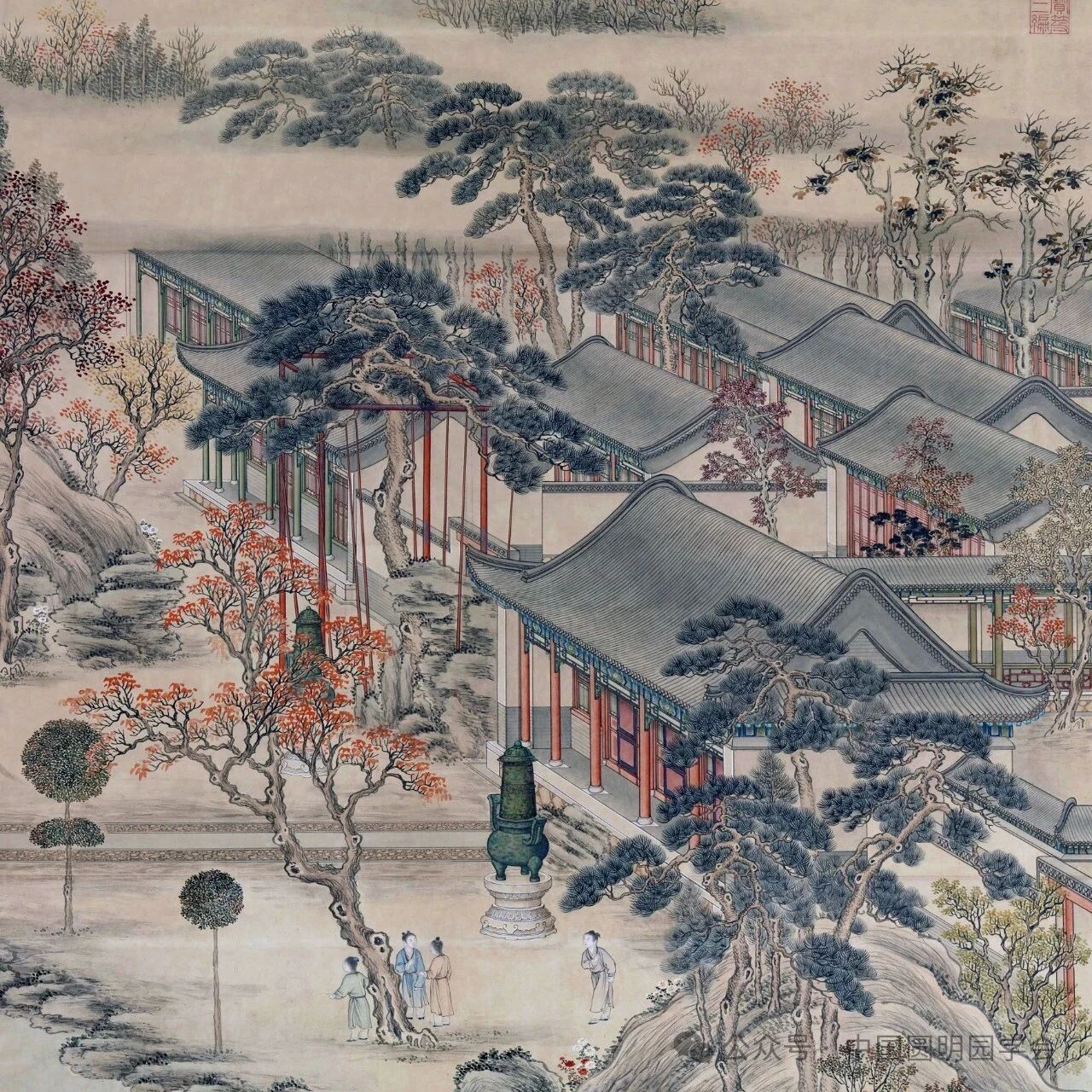 另一条重要信息见于乾隆元年十一月十五日如意馆档案含附记:“沈源来说,太监毛团传旨:着唐岱、郎世宁、沈源画圆明园一副。钦此。(于乾隆三年五月十一日唐岱将画得圆明园一副持进,贴在清晖阁讫。)”该画即《日下旧闻考》卷八十所载之《圆明园全图》:“清晖阁北壁悬《圆明园全图》,乾隆二年命画院郎世宁、唐岱、孙祐(祜)、沈源、张万邦、丁观鹏恭绘,御题‘大观’二字,并题联曰:‘稽古重图书,义存无逸三宗训;勤民咨稼穑,事著豳风七月篇’。”两者参看,实际下旨是在元年十一月,最初仅指派唐、郎、沈三人绘制,后又增加三人。
