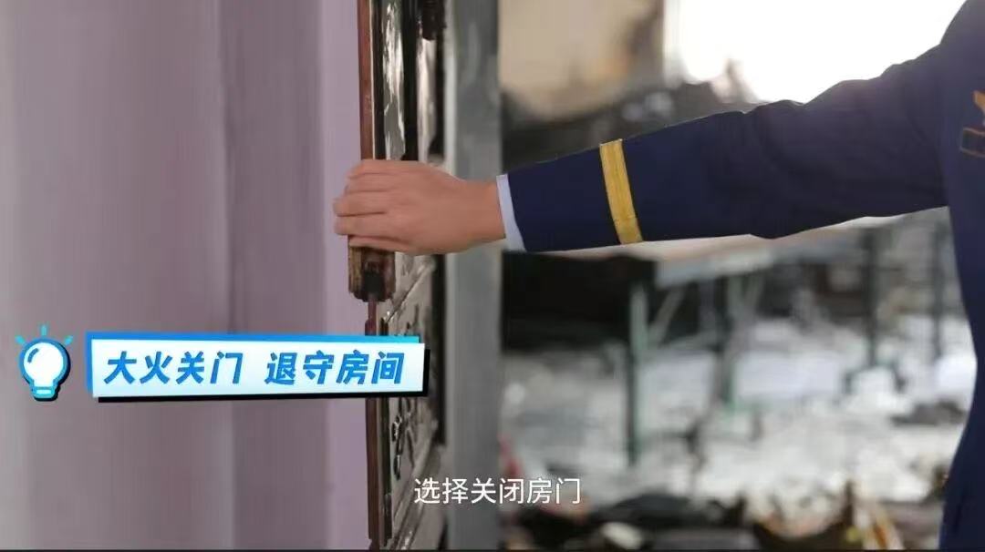 -先别急着开门,用手背摸一下门板:如果发烫,说明火已逼近,室外温度较高,坚决不能开;