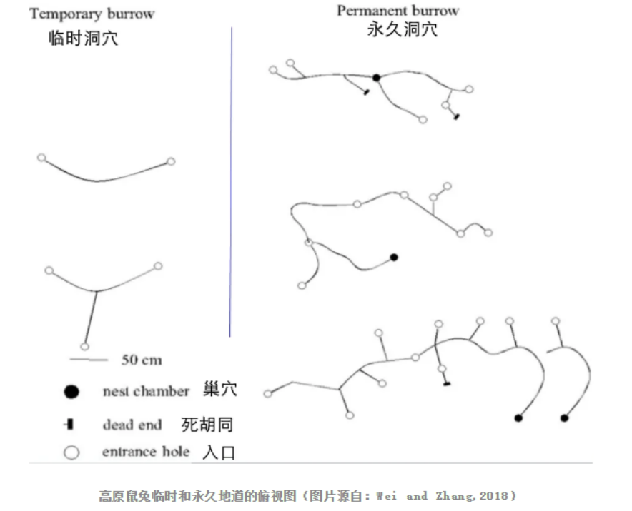 高原鼠兔洞穴系统的俯瞰示意图