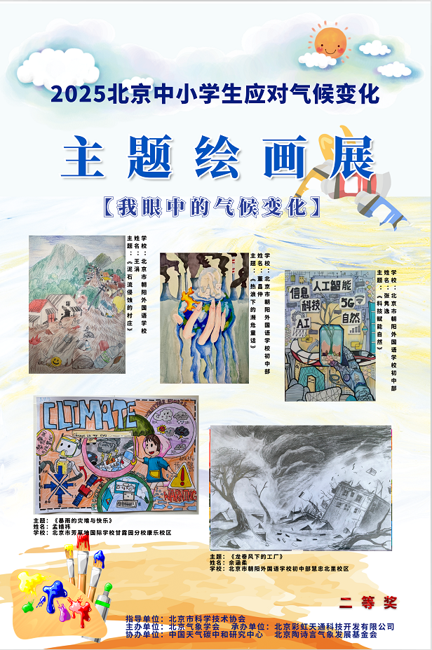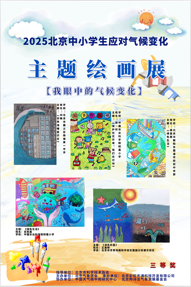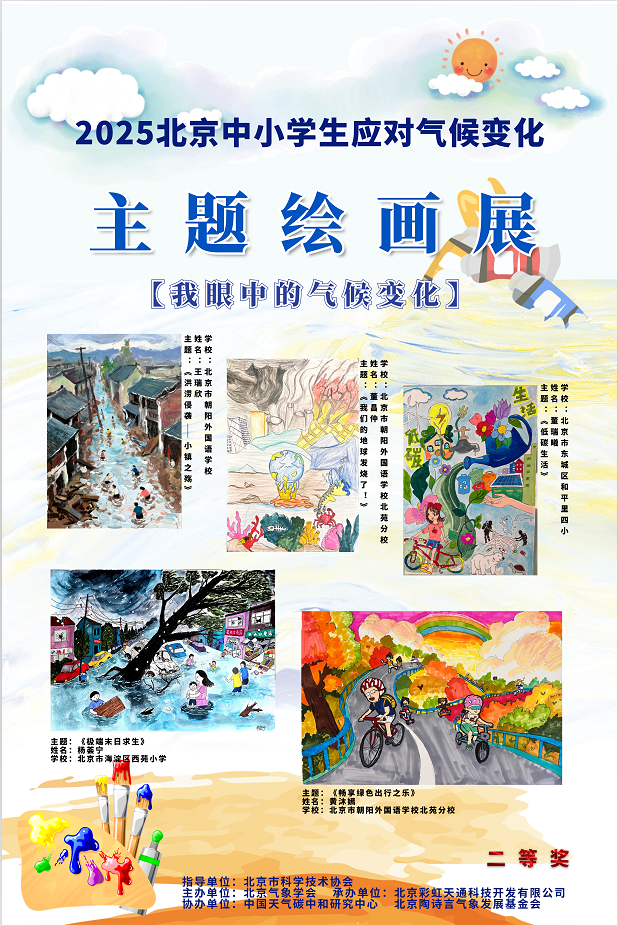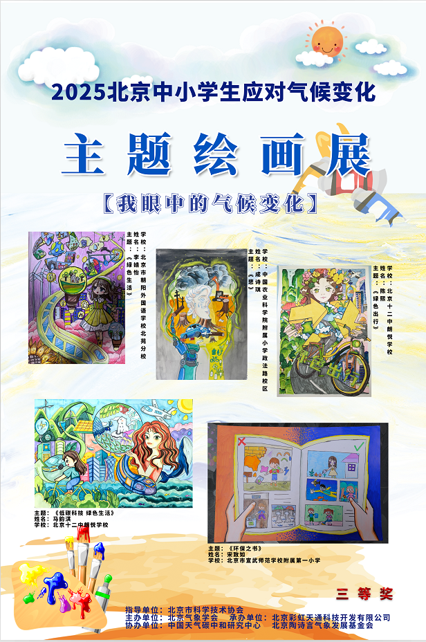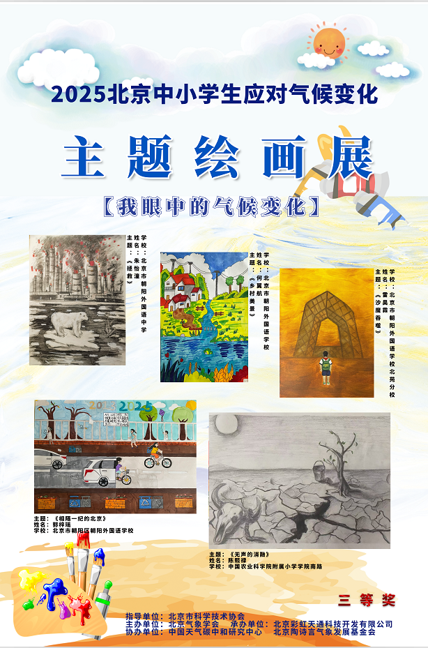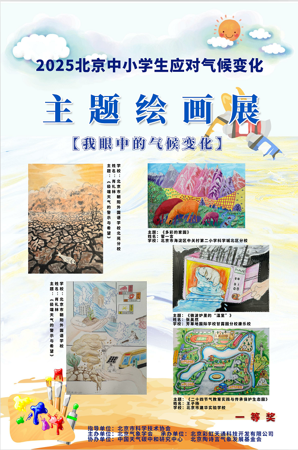 为积极响应国家“双碳”战略,激发青少年参与生态保护的热情,由北京市科学技术协会支持、北京气象学会主办的“2025年北京市中小学生应对气候变化主题绘画活动”于近日圆满收官。作为连续第二年举办的品牌活动,本次活动共收到全市中小学生创作的近百幅绘画作品,孩子们以画笔为媒介,生动诠释了对气候变化的理解与行动倡议。