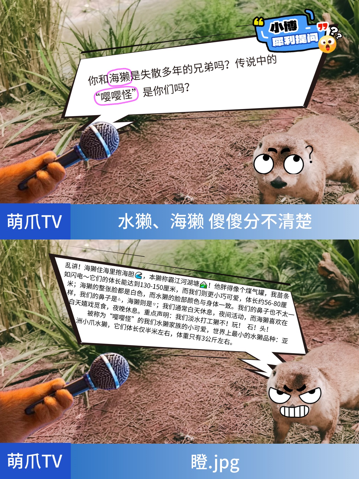 "达咩!海獭住海里抱海胆🌊,本獭称霸江河湖塘🏞️!他胖得像个煤气罐,我苗条如闪电~重点声明:我们淡水打工獭不!玩!石!头!(嫌弃脸)