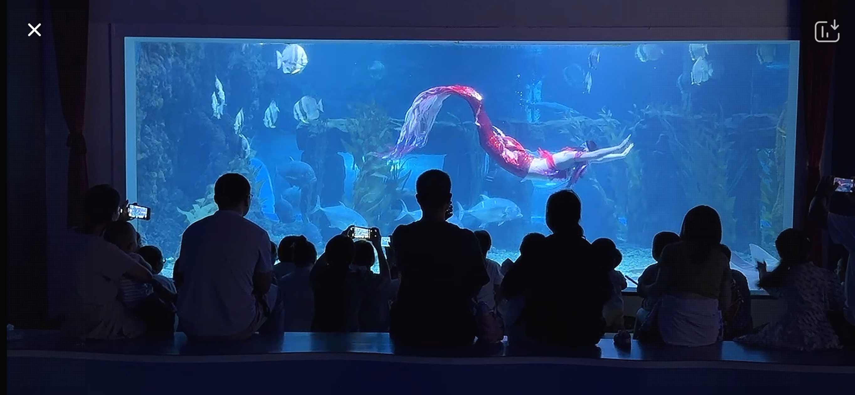 360度全景观赏鲨鱼、鳐鱼等海洋生物,感受人鲨共舞的惊险与美人鱼表演的唯美。